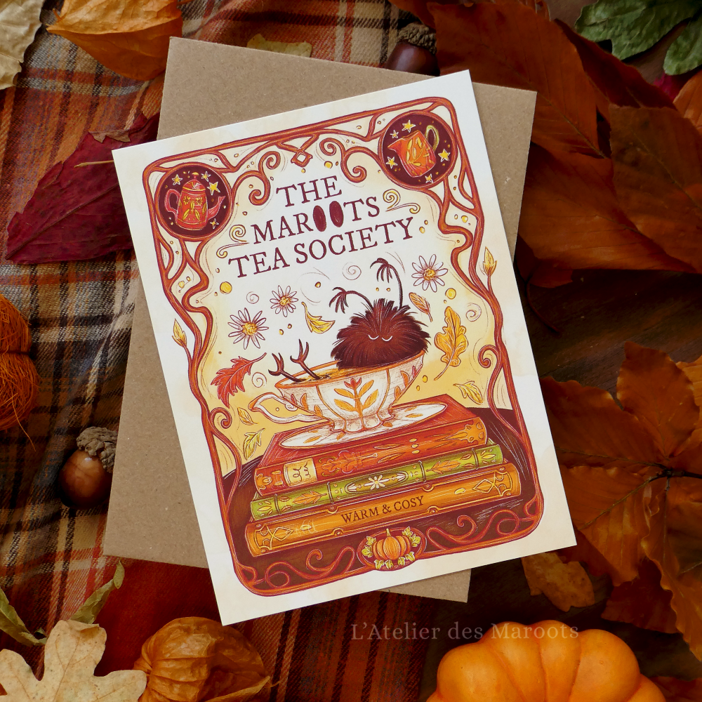 Au fil des saisons. MARQUE-PAGES LETTRE DE SAISON CARTES AFFICHES CARTE CADEAU ☾ Automne ☸ Marootween "Le Maroot - Tarot" - Marque-Page 3,00 € "Maroots Family" - Marque-Page 3,00 € "The Maroot Quilt" - Affiche 8,00 € "The Maroots Enchanted Potions" - Carte Postale 5,00 € "The Maroots Tea Society" - Carte Postale 5,00 € "Un Charoot" - Carte Postale 5,00 € "Courges à Bouille - Confiserie des Maroots" - Carte Postale 5,00 € "Racines de Citrouille - Apothicaire à Maroot's Alley" - Marque-Page 3,00 € "L'Apothicaire à Maroots Alley" - Carte Postale 5,00 € "Le Grimoire des Maroots" - Carte Postale 5,00 € "Le Manoir des Maroots" - Marque-Page 3,00 € "Peut-être celle-ci ?" - Marque-Page 3,00 €