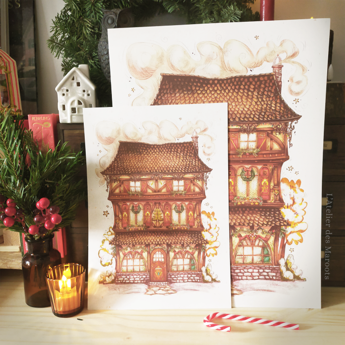 Affiche au format 30x40 cm ou A4 à encadrer ou à accrocher pour décorer votre doux foyer aux couleurs des fêtes de fin d'année.