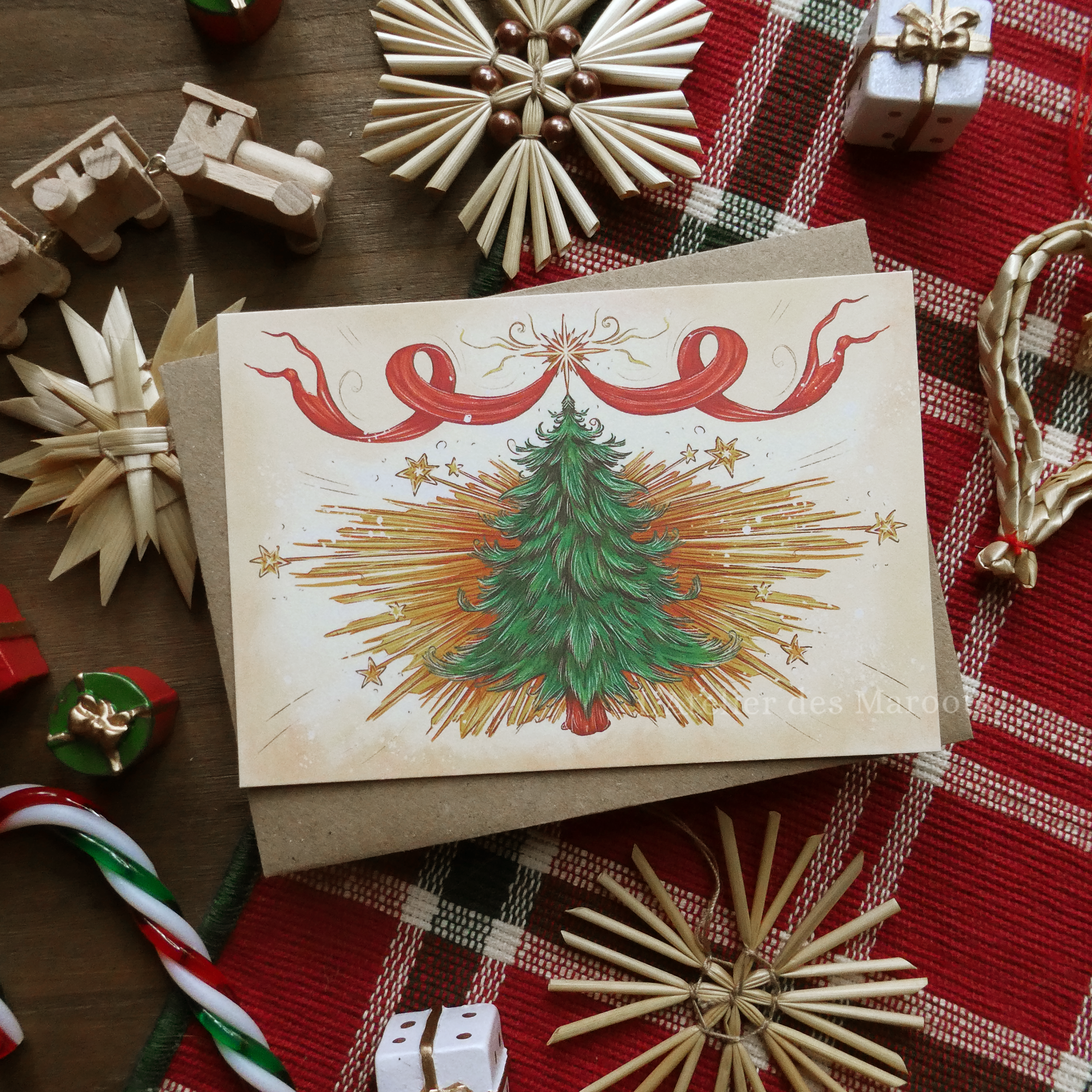 Petite carte pour offrir un joli mot de saison, ou pour décorer votre foyer aux couleurs des fêtes de fin d'année.